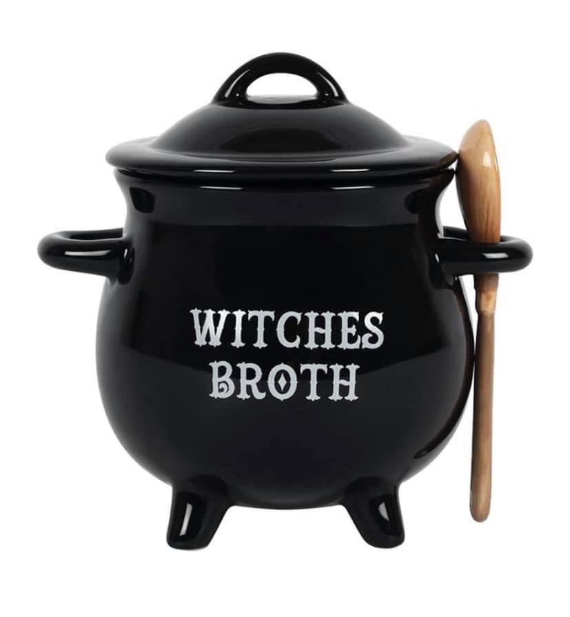 WITCHES CAULDRON SOUP BOWL WITH BROOM SPOON